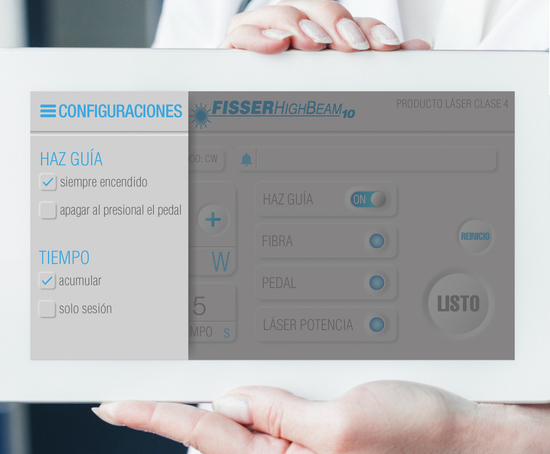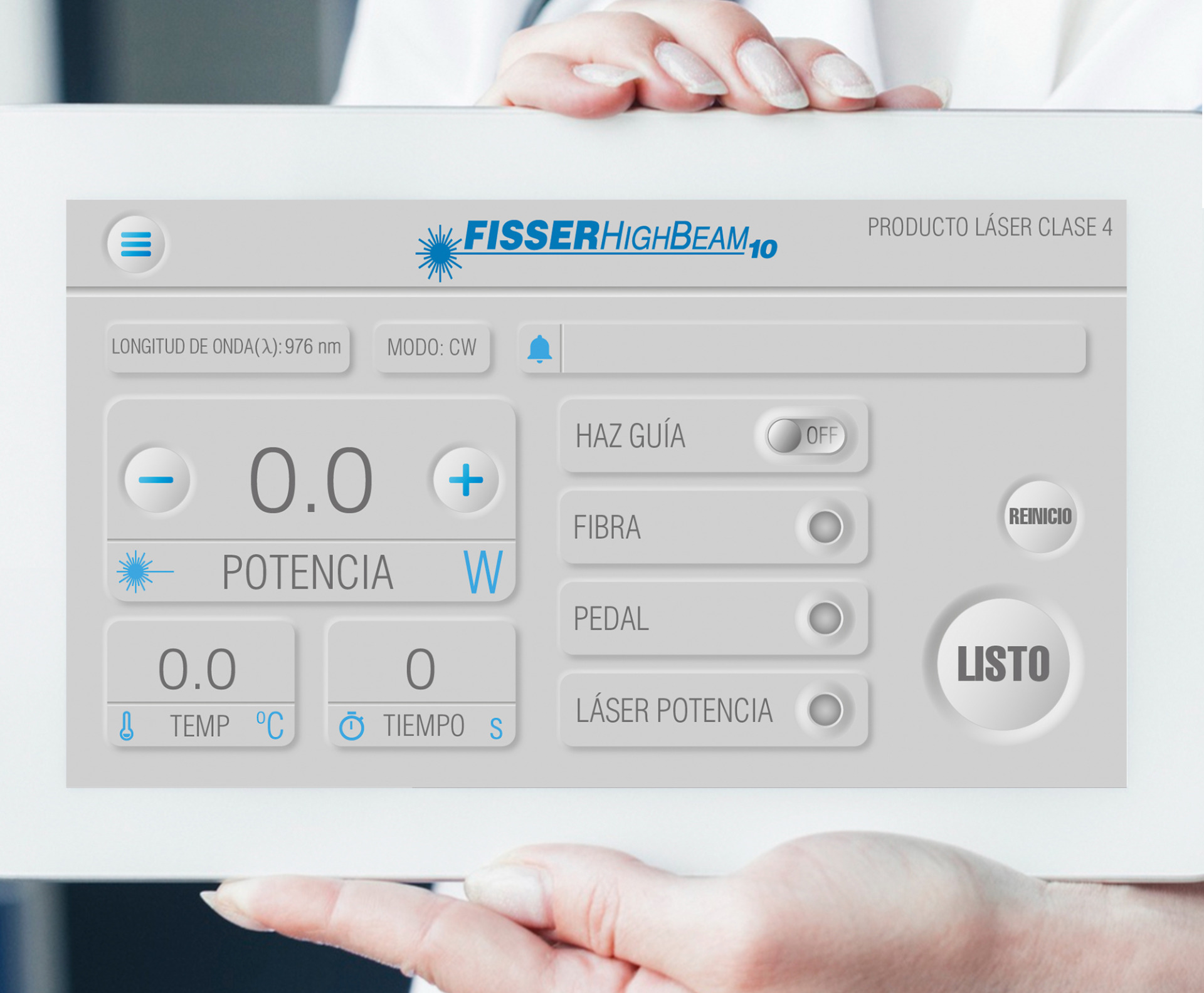 Proyecto de diseño de interfaces táctiles con estilo neomorfismo para el equipo médico láser llamado Fisser. Creación de interfaces elegantes y minimalistas, con elementos en relieve y sombras suaves para lograr un aspecto tridimensional. Uso de colores suaves y tonos pastel para transmitir tranquilidad y sofisticación. Diseño de iconos y botones intuitivos que brinden una experiencia táctil agradable y accesible para los usuarios del equipo Fisser.