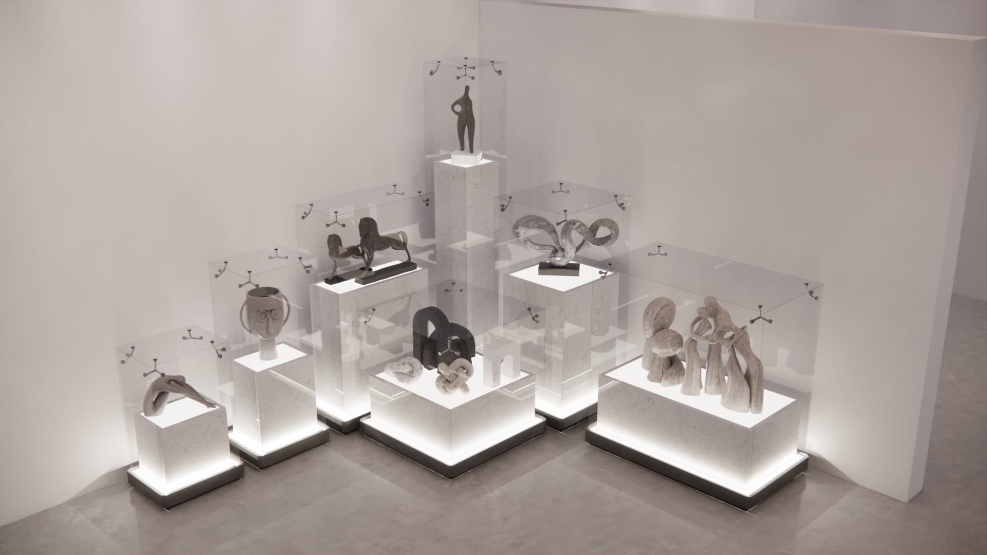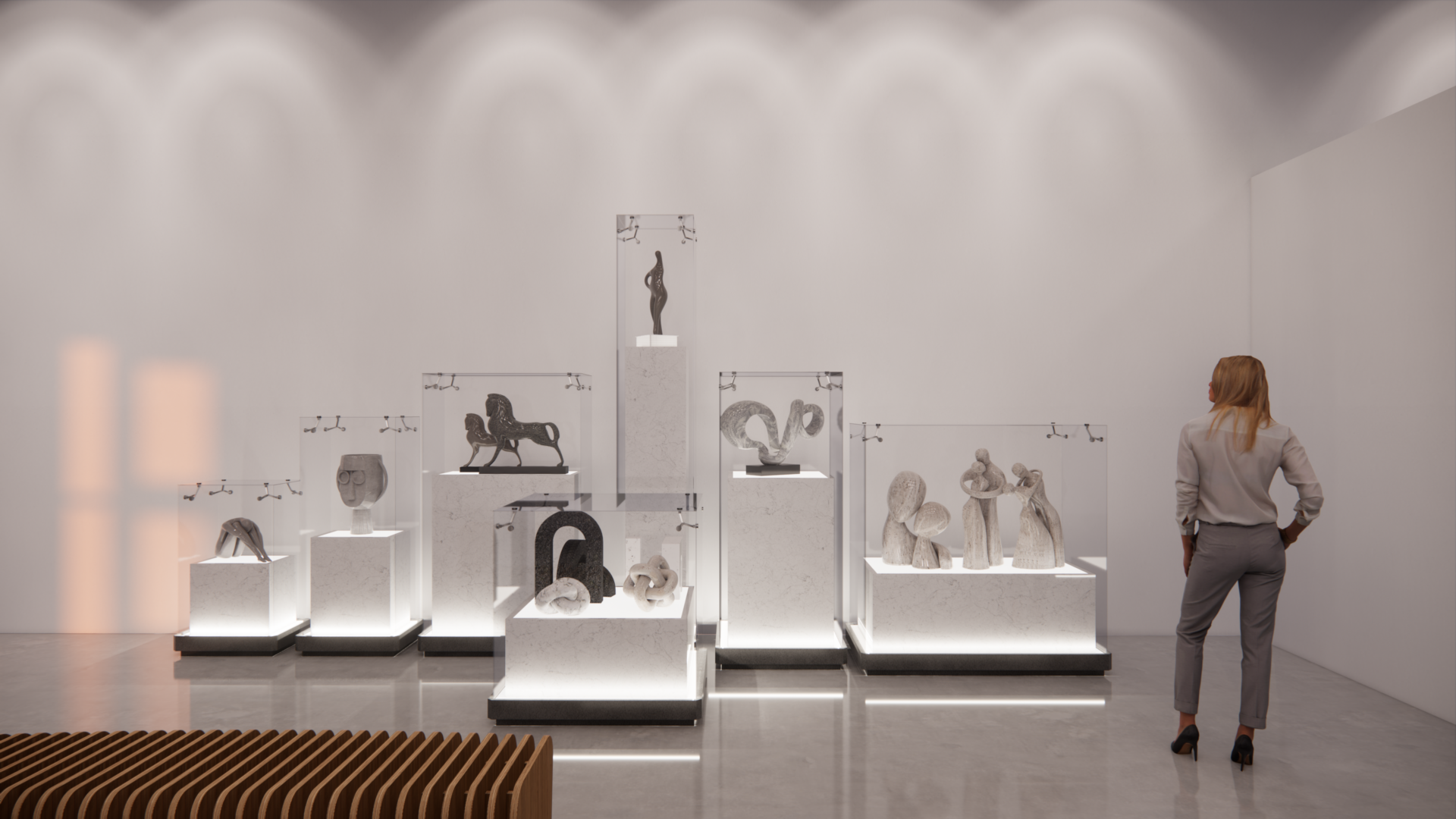 Diseño de variantes de expositores de arte para la empresa Carvings Nunavut. Se crearon una serie de soluciones innovadoras y atractivas con el objetivo principal de realzar la belleza y singularidad de las piezas de arte, al tiempo que se garantiza su seguridad y visibilidad. Se concibió el proyecto desde el diseño, modelado 3d y renderizado.