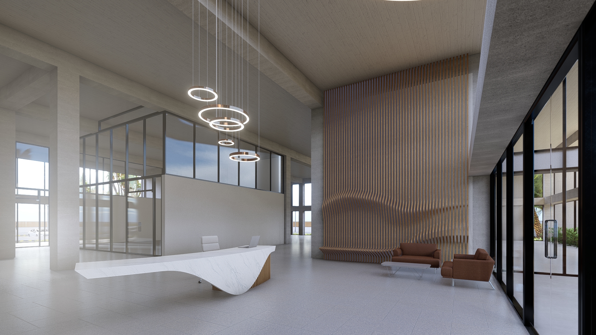 Proyecto de diseño, a nivel conceptual, de un edificio de oficinas para una empresa de tecnología. Se busca crear un espacio moderno, funcional y colaborativo que refleje la cultura innovadora de la empresa. Se concibió el proyecto desde el diseño, modelado 3d y renderizado.