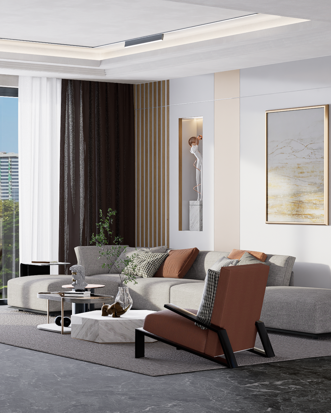 Proyecto de decoración para un salón moderno y sofisticado que busca crear un espacio elegante y contemporáneo que combine funcionalidad y estilo a través de la selección cuidadosa de cada elemento. Se concibió el proyecto desde el modelado 3d y renderizado.